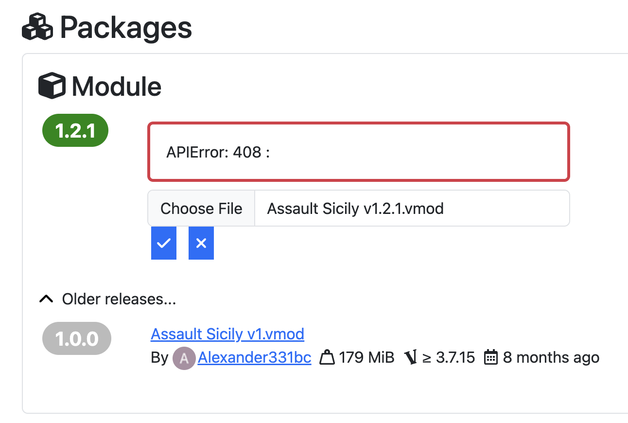 Hello, I’m trying to upload a module and am getting an API 408 error. I’m not sure what’s wrong this time. File size maybe?