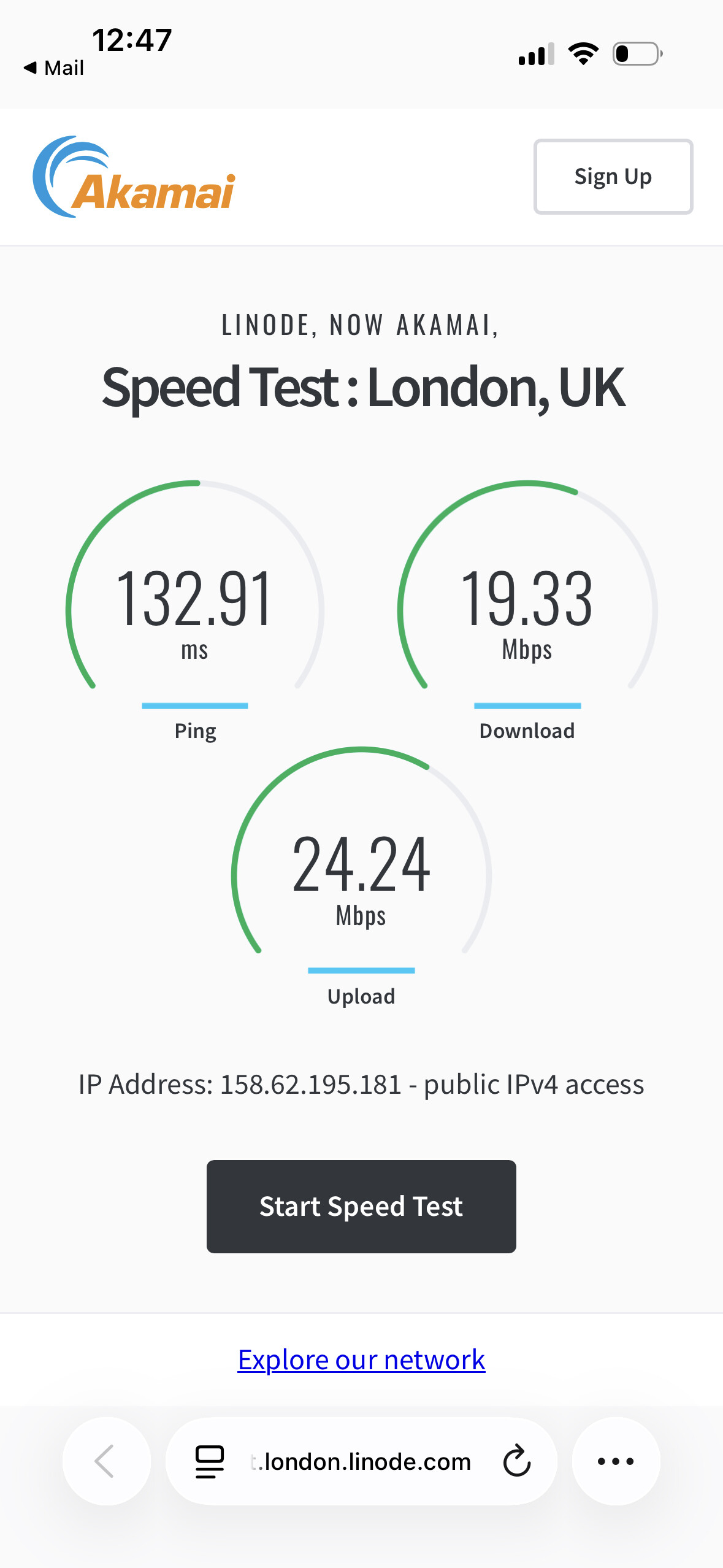 I spotted just now that our server is in the London 2 zone, not London, so this is the correct speed test, not the one I posted earlier. (I doubt you’ll get much different results from it, though.)