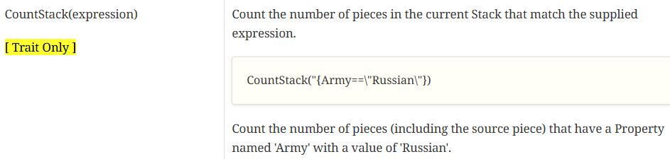 I need to know the number of the counters in a given stack that have a given property, not the number of all the counters in the stack. I tried to insert an expression like “Type = FSA” in the CountStack(expr), but It doesn’t work, giving a 0 result everytime.