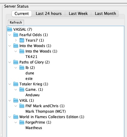 To investigate, I started a new session of Paths of Glory (v 10.8) and connected to the server. The Server Window within my PoG game session showed a different set of players (including myself) than that which is shown above.