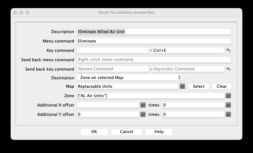 So, the destination of your Send to Location would be something like {(PlayerSide == “Axis” ? “A” : “B”) + (GetProperty(PlayerSide + “DestroyedCount”) < 10 ? "0" : "") + GetProperty(PlayerSide + “DestroyedCount”)}, assuming you have two player sides, one of them called “Axis”, and define your Grid Numbering to use a single letter for the row followed by 2 digits for the column (this will break if more than 100 units could be destroyed for a single side; a more complicated formula could be used to allow for more units).