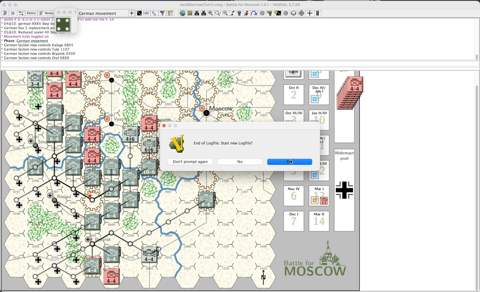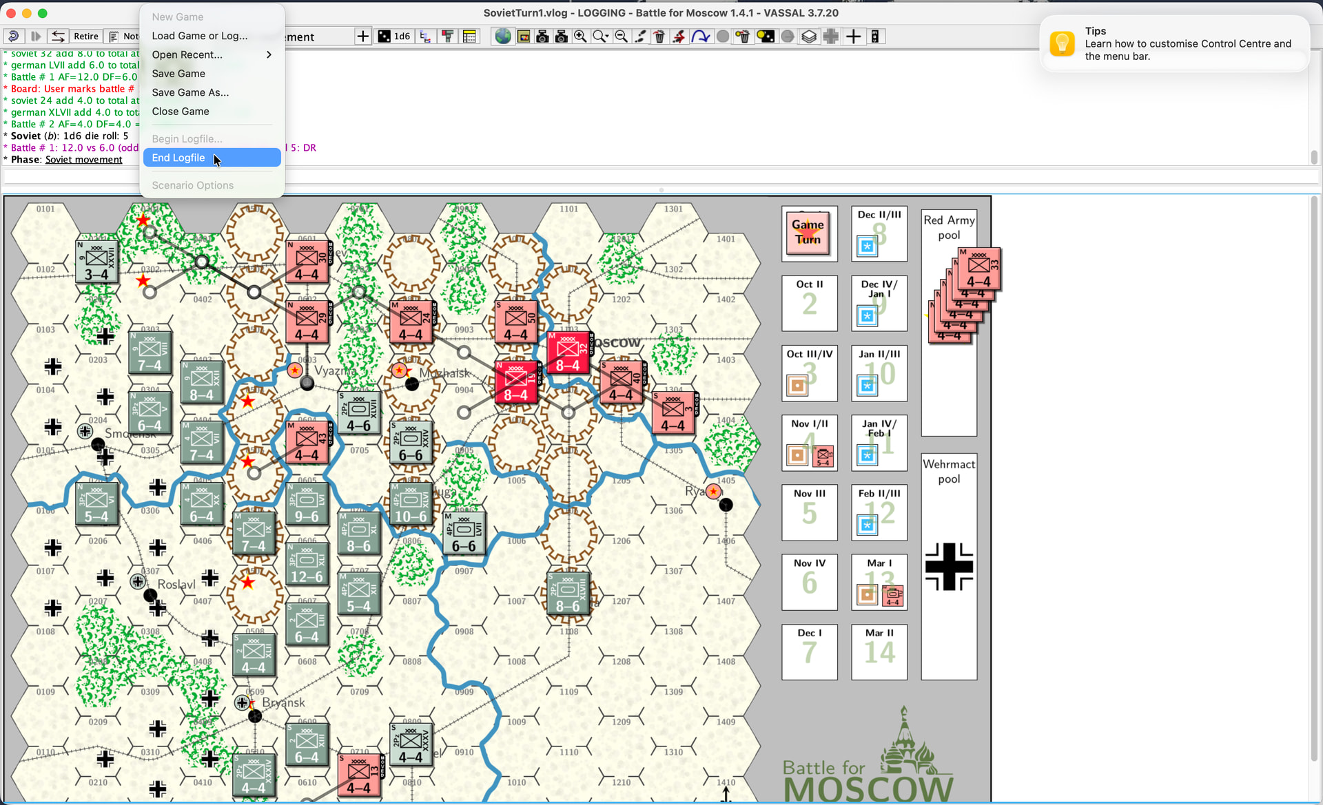 Once the Soviet faction has completed its turn, it will end the log file by File→End Logfile.