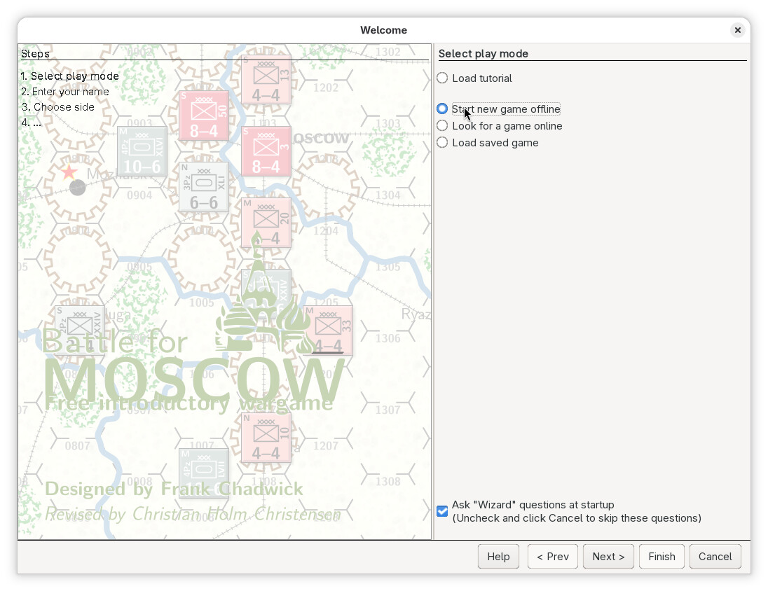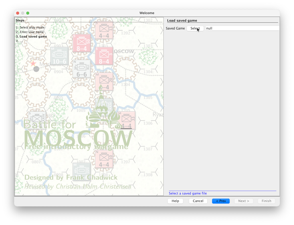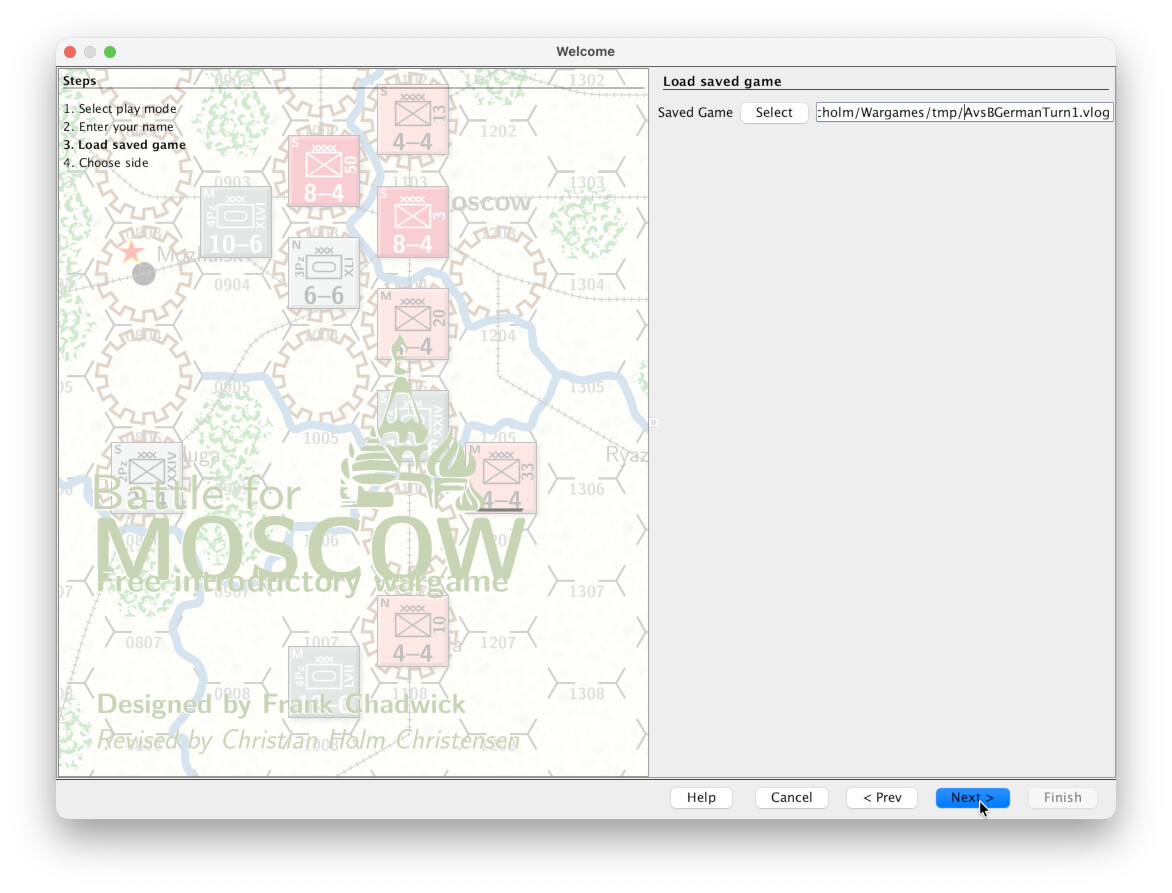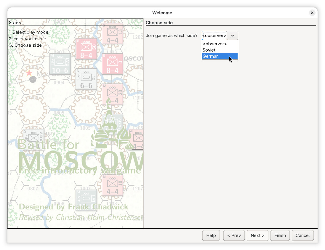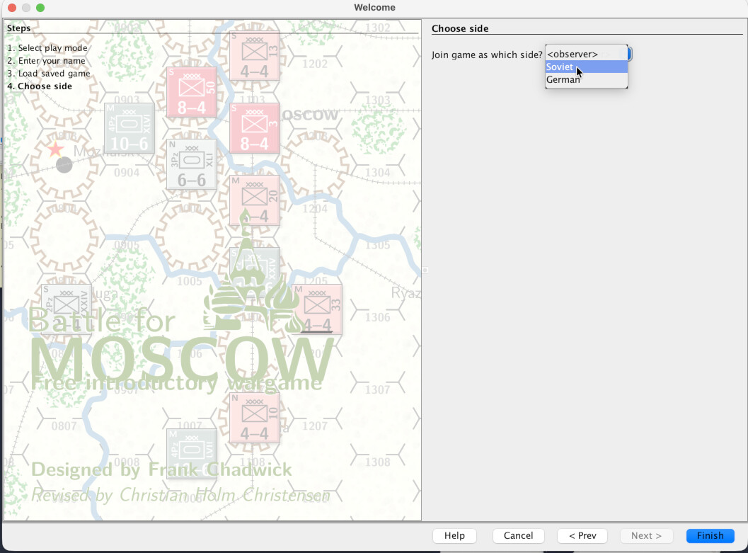 Player B cannot choose the German side, or faction, becaus that has already been chosen. We choose the Soviet faction, an then press Finish.