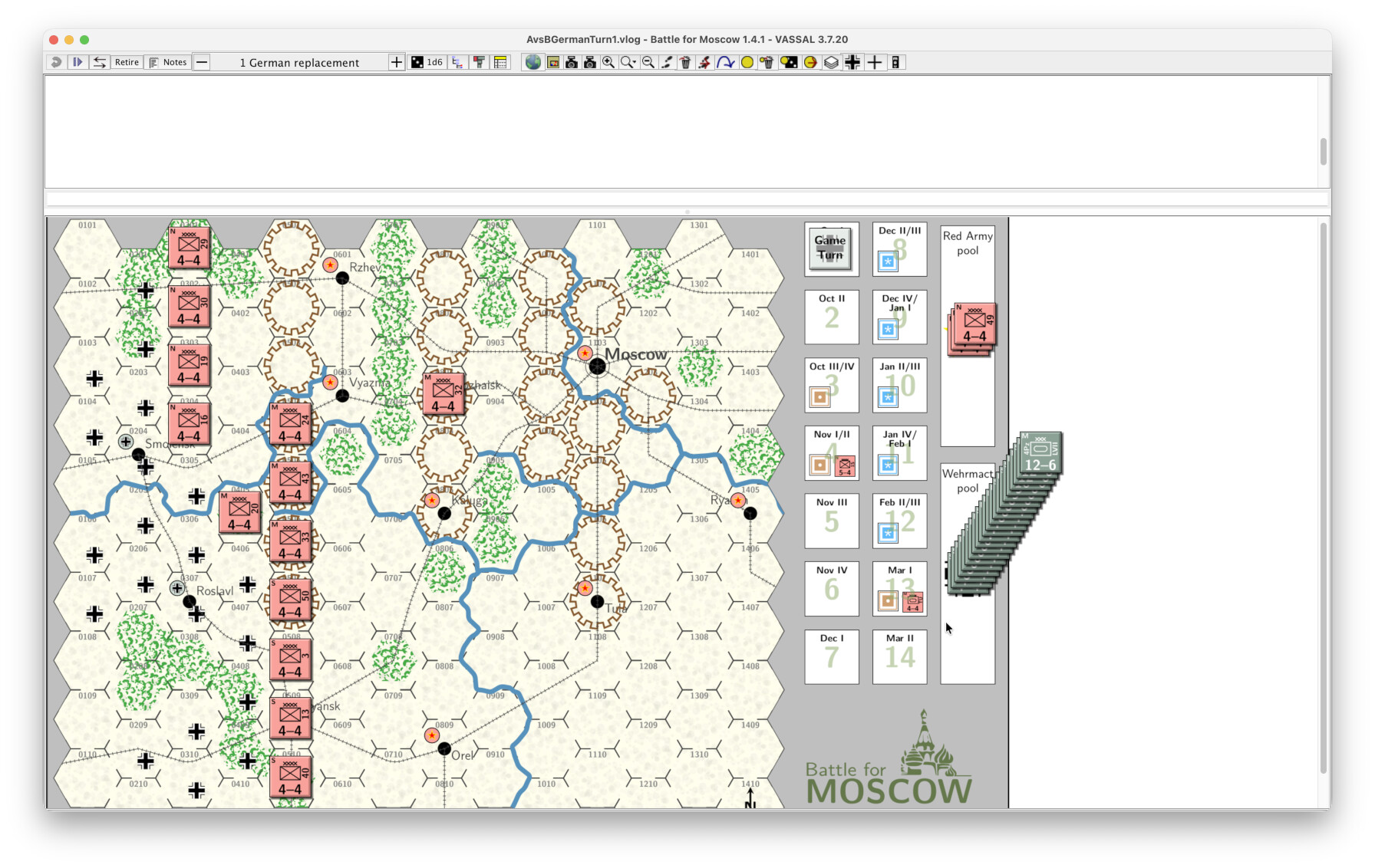 During the turn, the German faction may move pieces, execute commands, draw or play cards, and so on. The player may add comments or annotations be entering text, followed by pressing