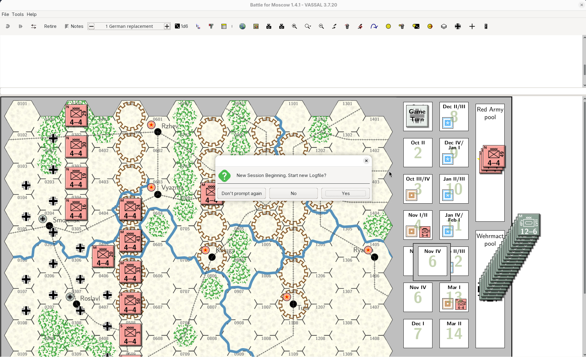 Now the module will be loaded in earnest, and player A is prompted by a pop-up dialog to start a new log file.