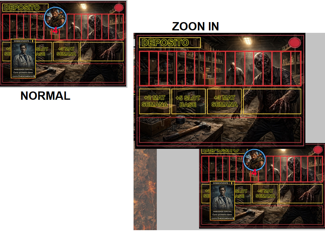 So far so good. Now I wanted to create a Mouse-over Stack Viewer function to zoom in on all the pieces that are on top of the larger card, but the best I could do was show only one card at a time.
