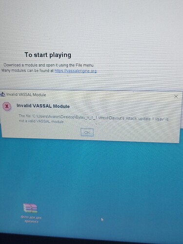 . I downloaded everything on phone after this transfer on pc I start vassal on win10. Click open file it’s open folder with mod I try to start all scenarios but everywhere was error that it’s invalid mod for vassal.