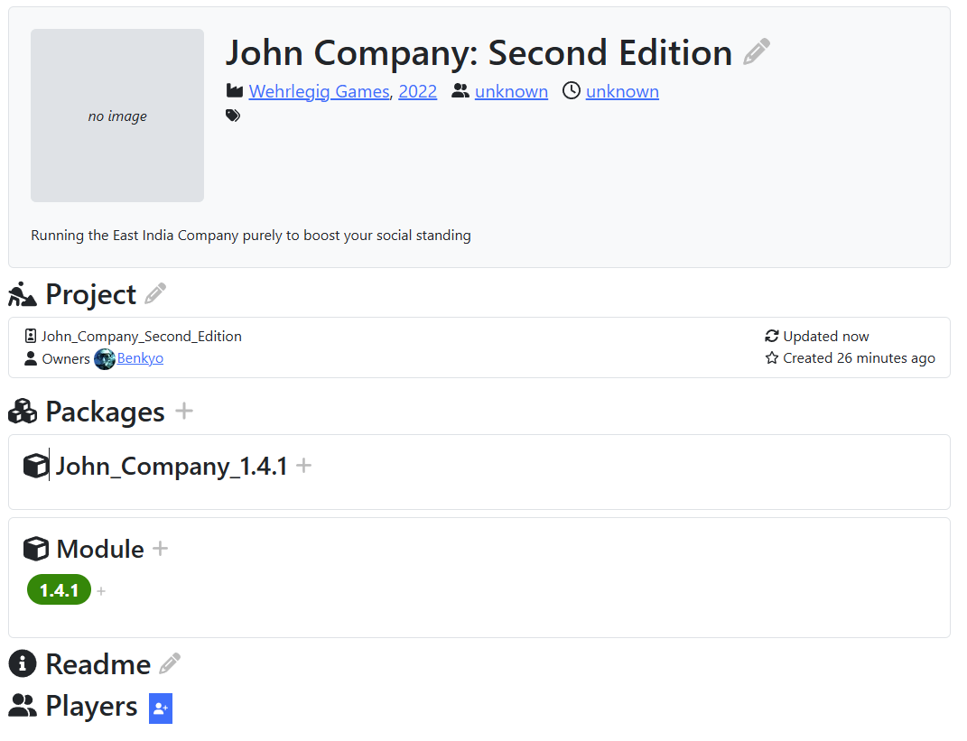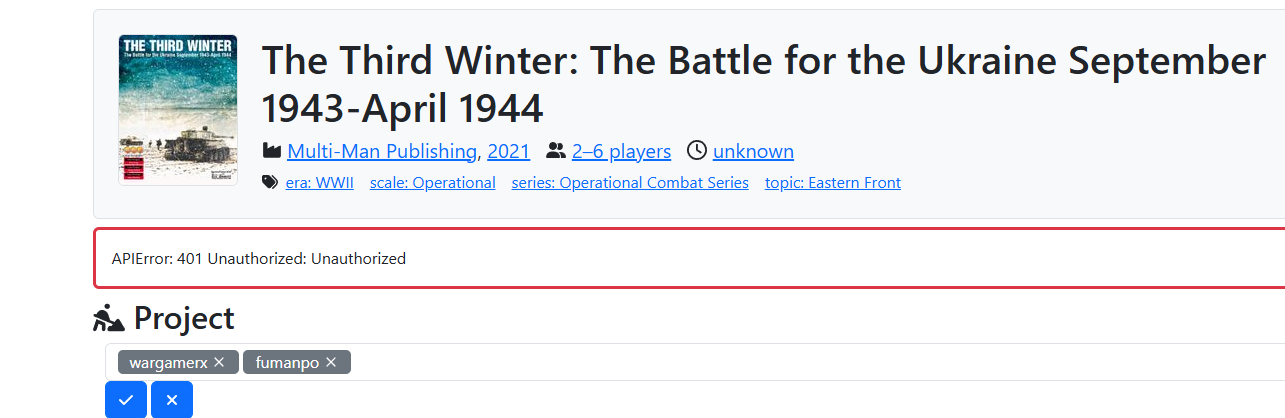 I am listed as the Project Owner of “Reluctant Enemies” an OCS module. The profile name is the first part of my email: combatengineerjr however my actual profile name is combatengineer. So I can’t add the actual owners of the project, they had sent me an email requesting my help. The actual owner are Herman Wu(profile fumanpo) and Jeff Coyle (profile wargamerx).